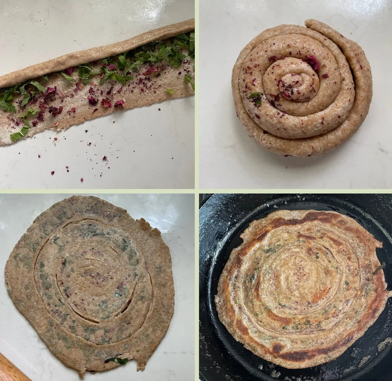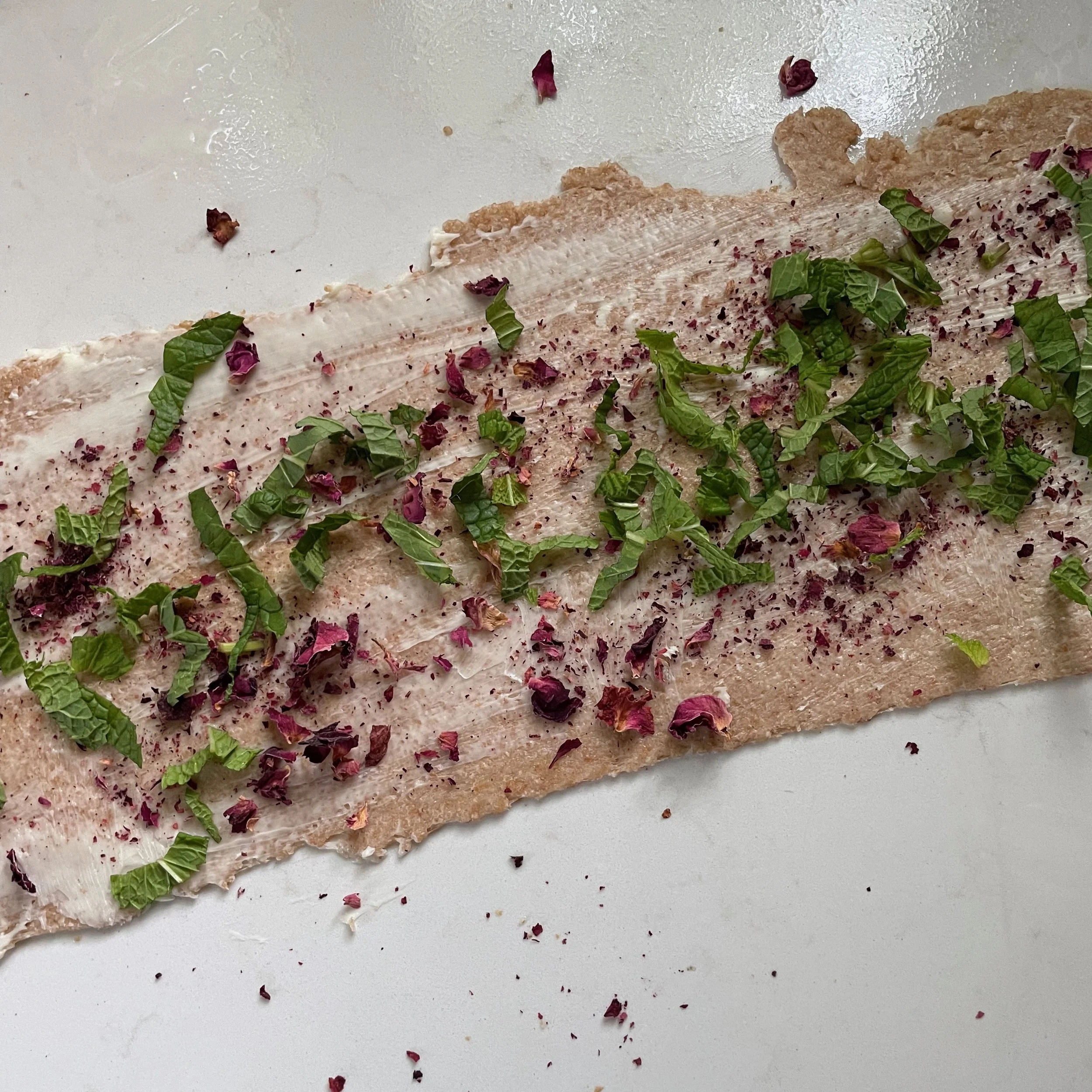 Recipe as feeling: Ambition (Spiral flatbread with rose petals and mint)